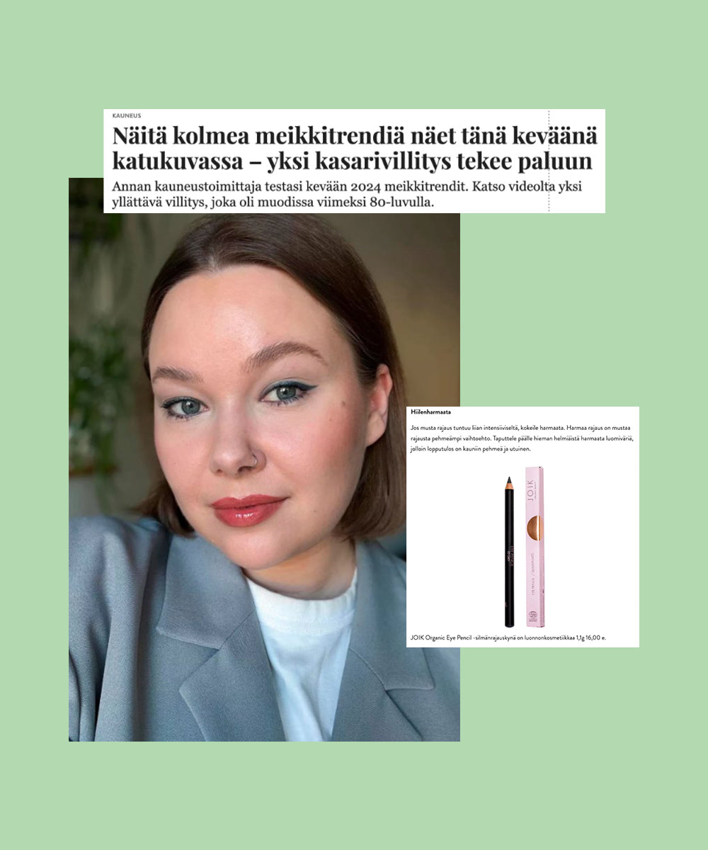 Charcoal Gray – If black eyeliner feels too intense, try gray. Gray eyeliner is a softer alternative to black. Dab a little pearlescent gray eyeshadow on top for a beautifully soft and hazy finish. The JOIK Organic Eye Pencil is a natural cosmetics product.